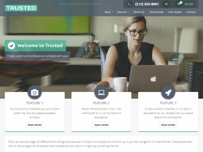 - Главная страница: Яркий и запоминающийся вводный текст, который расскажет о вас или вашей компании.